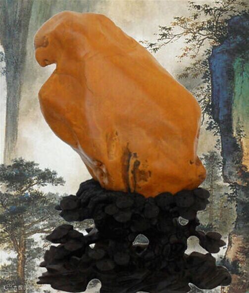 《中华神鹰》:现收藏于广东的一位张姓藏家手中,属黄龙玉籽料,如真鹰大小。这是一块天然形成的奇石,弯弯的鹰嘴,犀利的眼神,完美的线条形神兼似,配上金黄色的玉质,大小又与真鹰比例一样,让人不得不感叹这大自然的鬼斧神工之作。规格:18×15×32厘米,重量:14KG 。