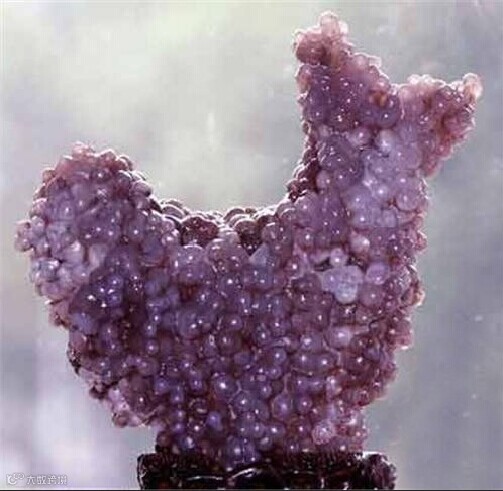 《中国版图》:一块中国版图形状的葡萄玛瑙,这块葡萄玛瑙紫色与白色相间,葡萄球状结晶十分完美,而且整体形状与中国版图极其相似。