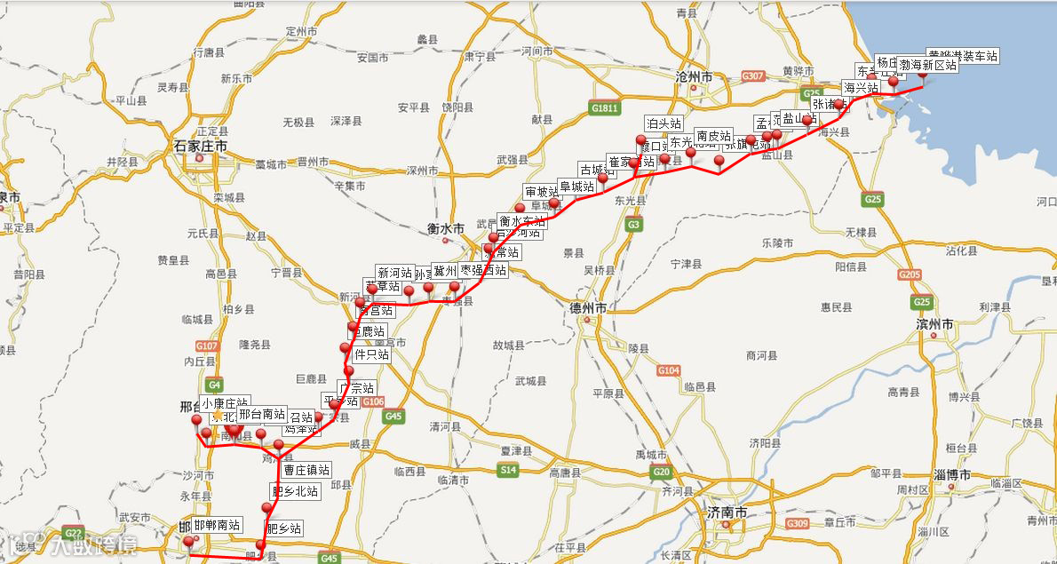 邯黄铁路于2010年10月全线开工建设,2013年12月28日开通,2014年11月29日正式运营。
