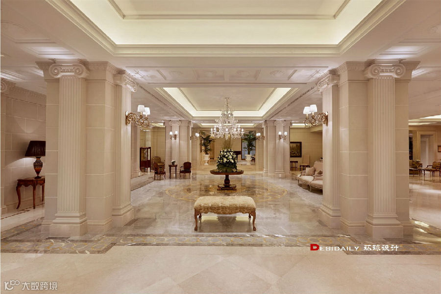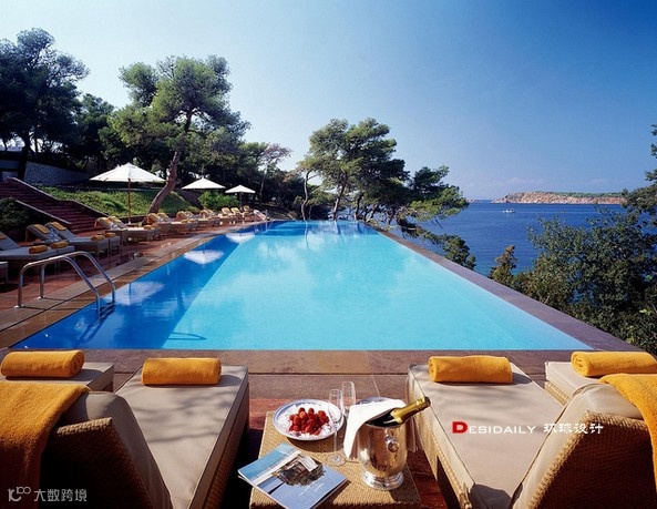 碧蓝的泳池在石材的映衬下更显大方高贵