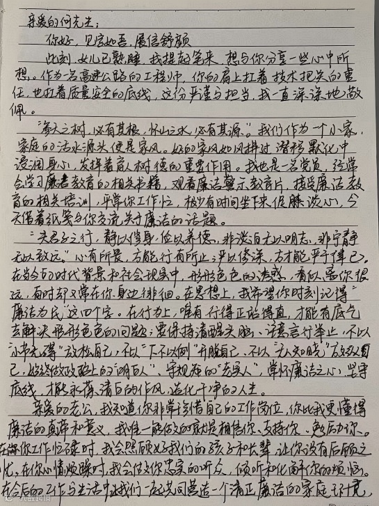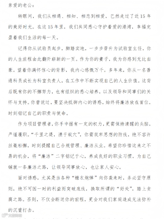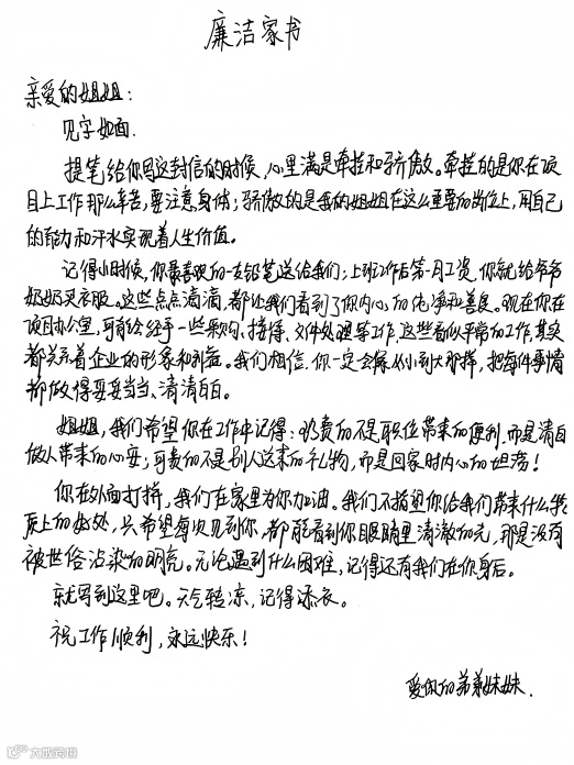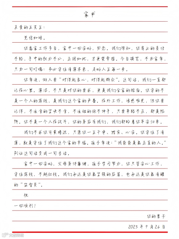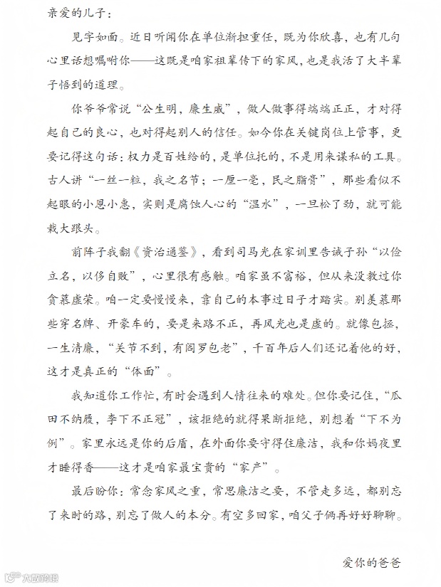 有伴侣的温情叮嘱,有父辈的谆谆教诲,有手足的真诚期许,更有同事间的廉洁共勉,字里行间皆是对家风传廉的坚守与期盼。那些藏在字里行间的叮嘱与期许,是最动人的廉洁教材。