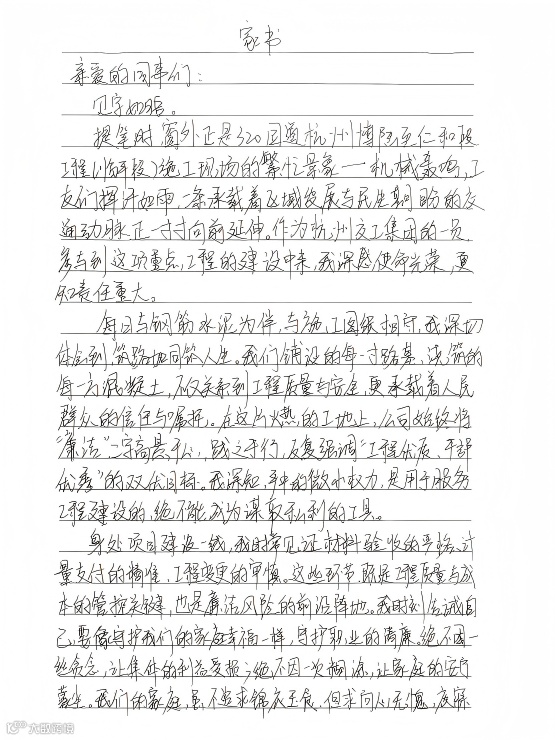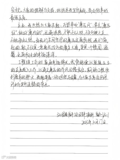 根据公司“廉筑工程守初心,品质护航扬正气”党风廉政宣传教育月活动要求,公司纪委组织开展“清风传家・廉润初心”主题作品征集活动,该活动由项目第八党支部承办。为传递廉洁正能量,现从征集到的廉洁文化作品中择优展示,邀大家共品廉洁文化、筑牢廉洁防线。