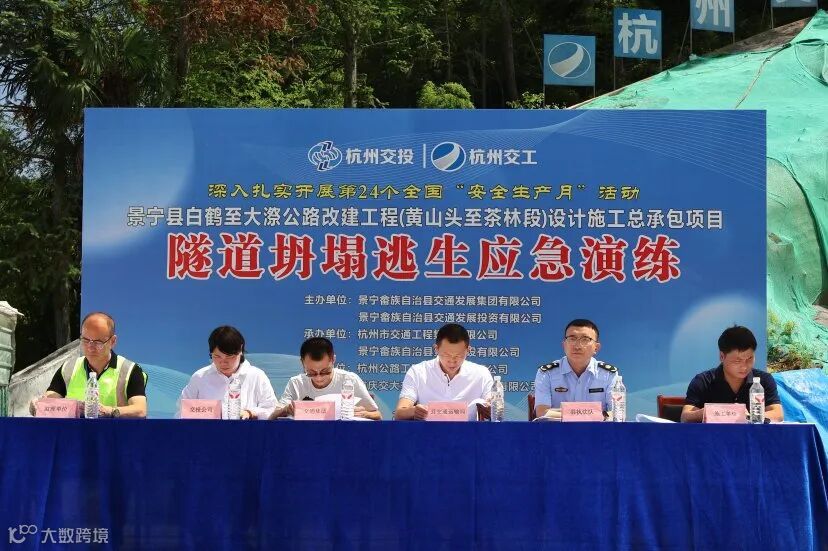 为进一步强化隧道施工安全管理,检验事故应急预案的可执行性,切实提升项目全员安全意识及应急救援技能,6月26日,景宁白大线项目组织开展大漈岭隧道坍塌逃生应急实战演练。县交通运输局、县执法队工程质监中队、县交通集团、县交投公司领导到场观摩并指导。