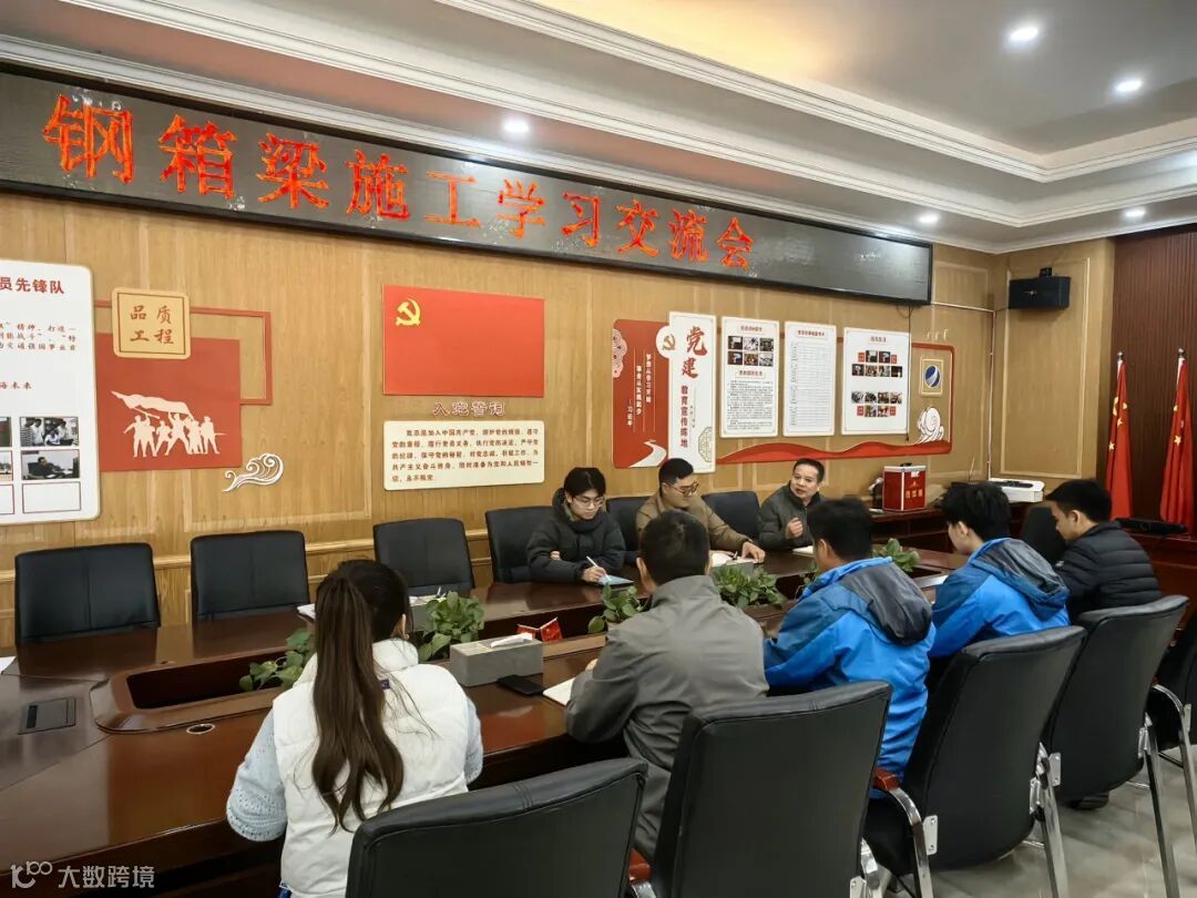 当天下午,由三门项目部组织开展了钢箱梁施工学习交流会。在会议中,三门项目负责人郭佳佳及总工徐伟刚就项目管理、质量控制与安全生产等方面的经验进行交流分享,总结了施工过程中常见的重难点及注意事项,为后续新坝项目部钢箱梁的施工提供了宝贵经验。