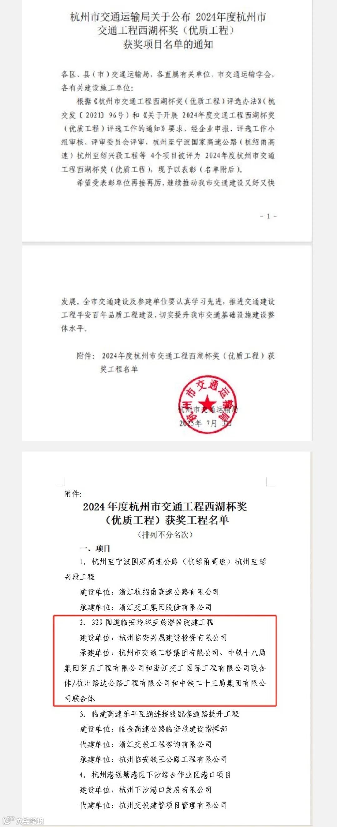 历经两年半建设,329国道改建工程顺利交工验收并获“西湖杯奖”。如今,双向六车道大道串联临安中西部经济节点与产业园区,助力构建杭州都市圈1小时商务圈与市域1小时通勤圈,为旅游开发与乡村振兴提供交通支撑。