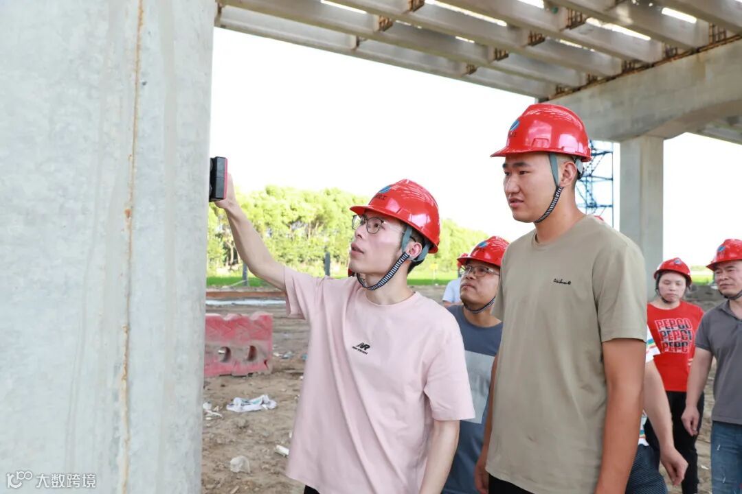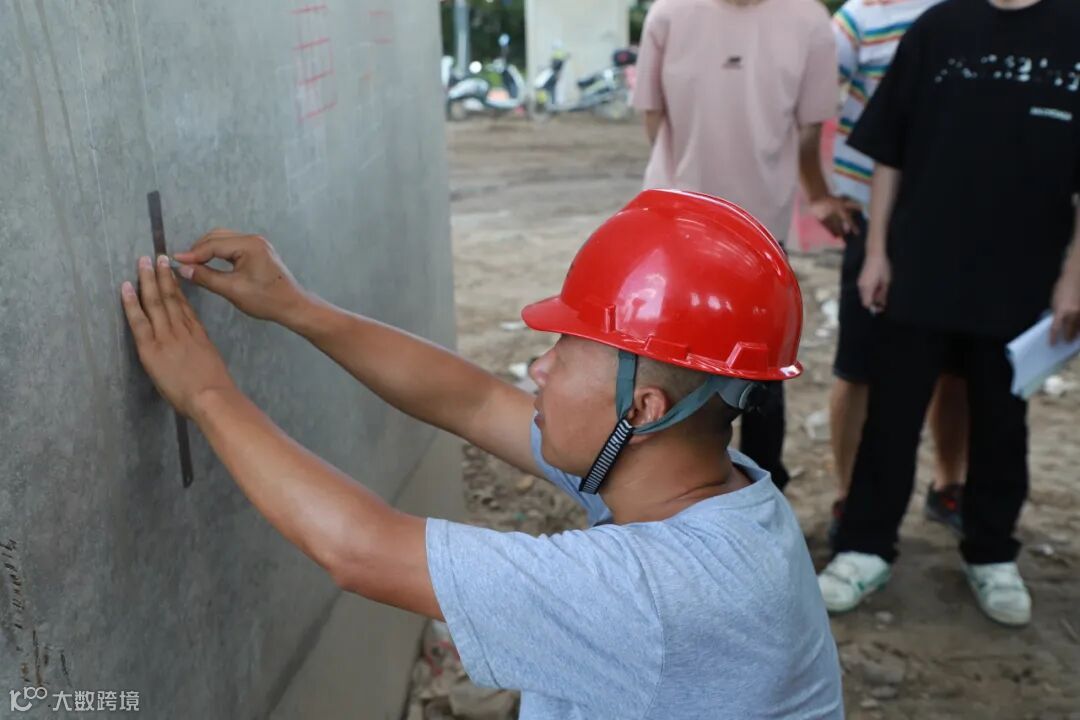 施工现场,内训师陈先龙首先介绍了开展混凝土保护层厚度检测的重要性及检测的主要内容,并对本次检测的立柱和检测工具做了详细讲解。
