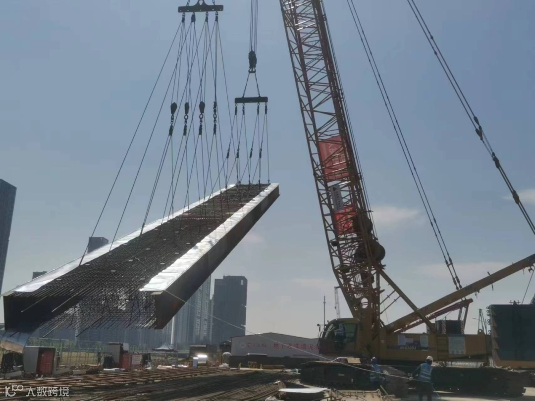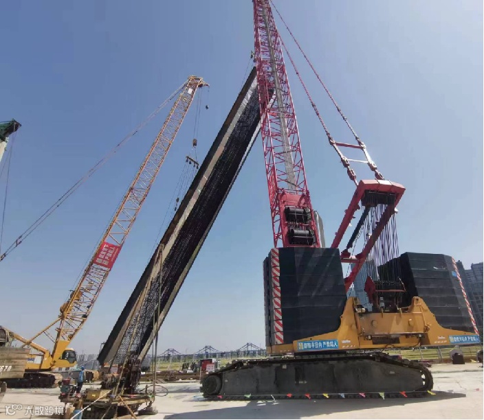 钢筋笼起吊是将钢筋笼由水平状态转成垂直状态的过程,地下连续墙钢筋笼重量大,一般由一台较大吨位的吊车和一台较小吨位的吊车共同完成吊装任务。