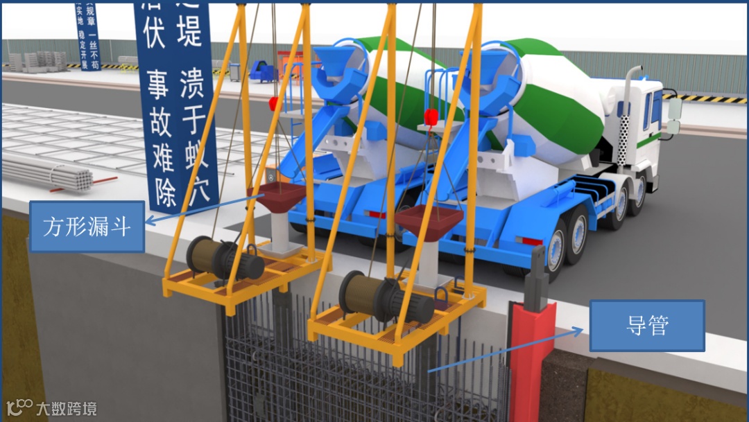 吊放砼导管→安装顶端漏斗→混凝土浇筑