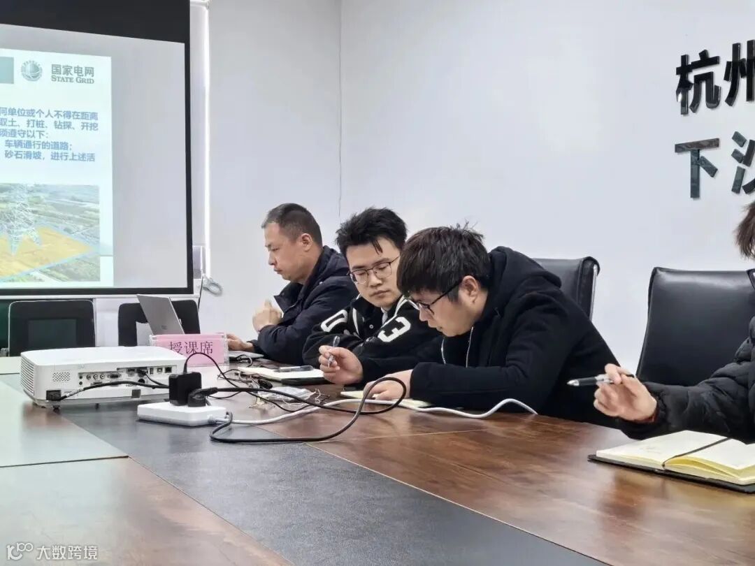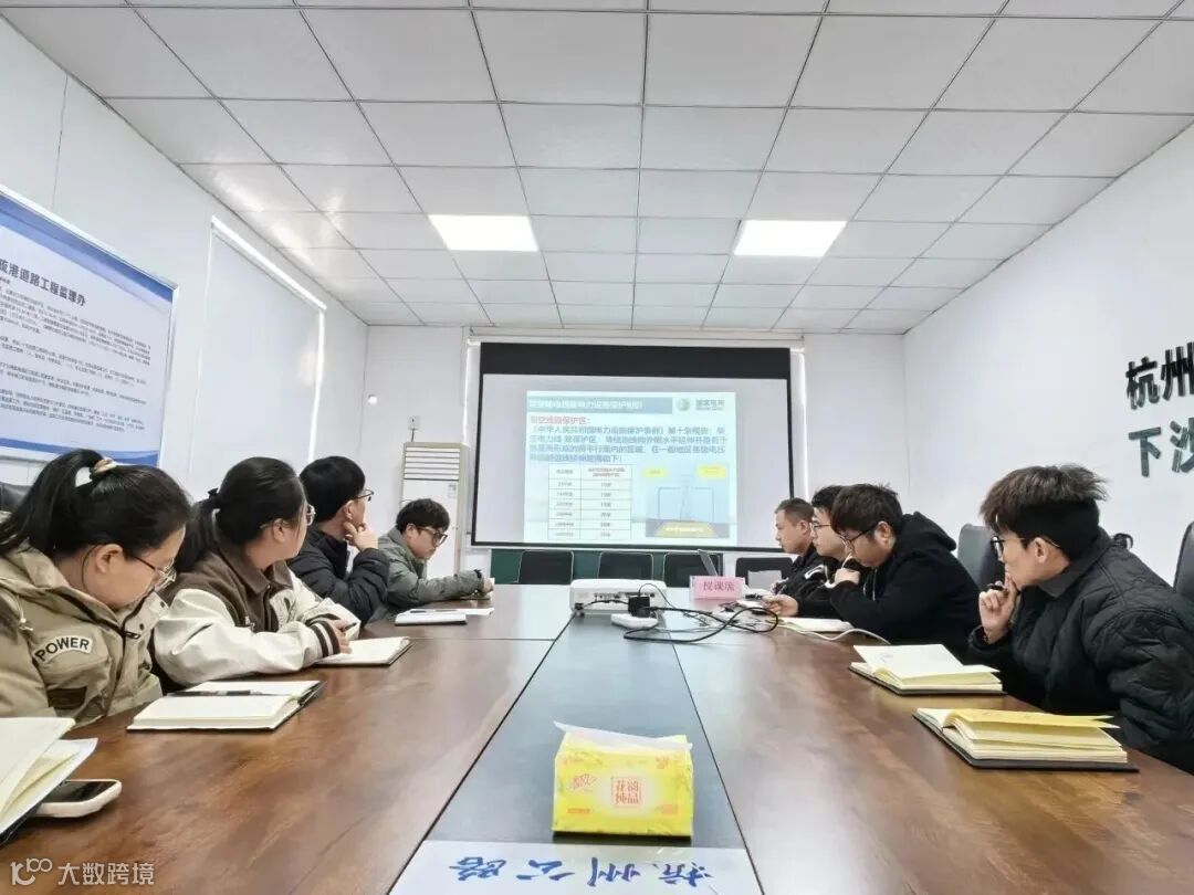 其中讲到架空线路保护区范围时,由于下沙港疏港道路工程项目现场环境复杂需在高压铁塔下进行施工作业,工程科负责人也结合现场实际施工情况重点强调了高压铁塔施工的注意事项,现场施工涉及到电力线路复杂,要求项目技术员要尽快熟悉和掌握工程现场情况。