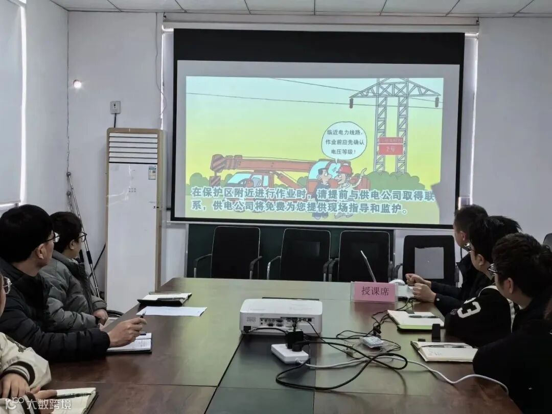 全体学习小组成员观看电力保护宣传视频,学习了正确在高压铁塔下安全施工要求以及十一个“不许”严禁触碰安全红线。