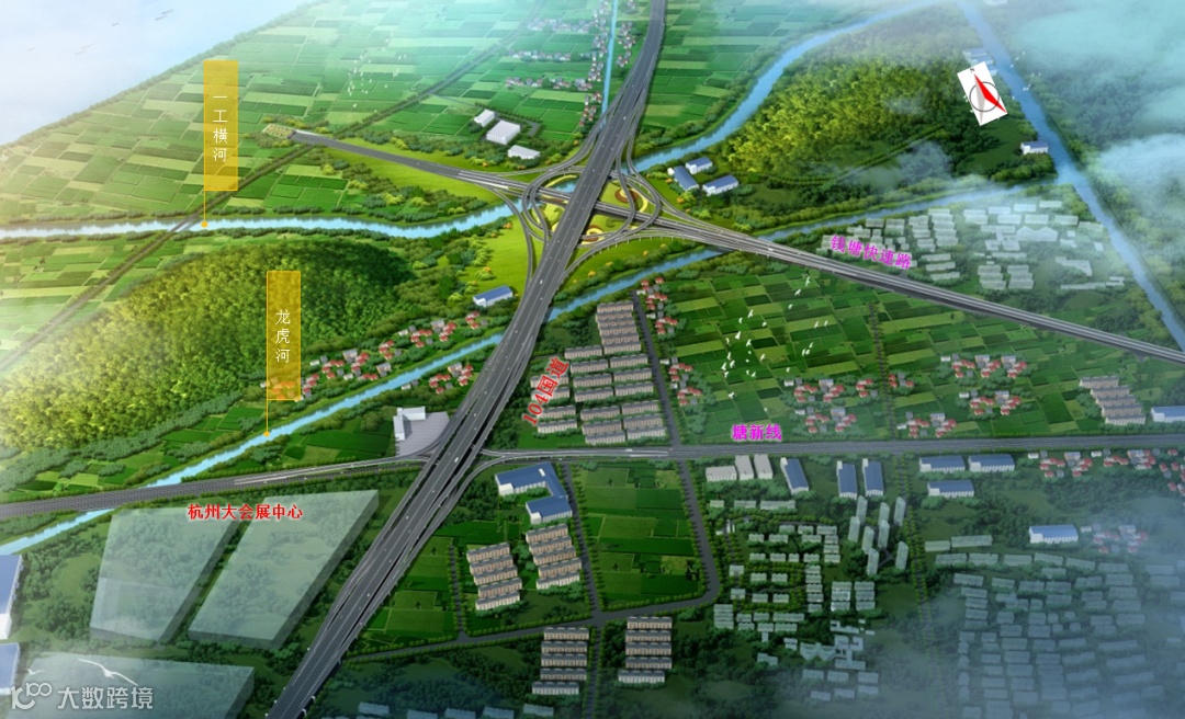 104国道杭州河庄至衙前段工程起点位于杭州市钱塘区河庄街道,规划滨江二路与江东三路交叉处,与现状江东三路及规划过江通道衔接,路线向南延伸,经萧山区南阳街道、红山农场、瓜沥镇,终点位于杭州绍兴交界处衙前镇,高架桥梁与104国道绍兴段顺接,终点桩号为GK22+804,地面道路终点在杭甬运河桥以南与现状地面路平顺衔接,终点桩号为 DK22+750。