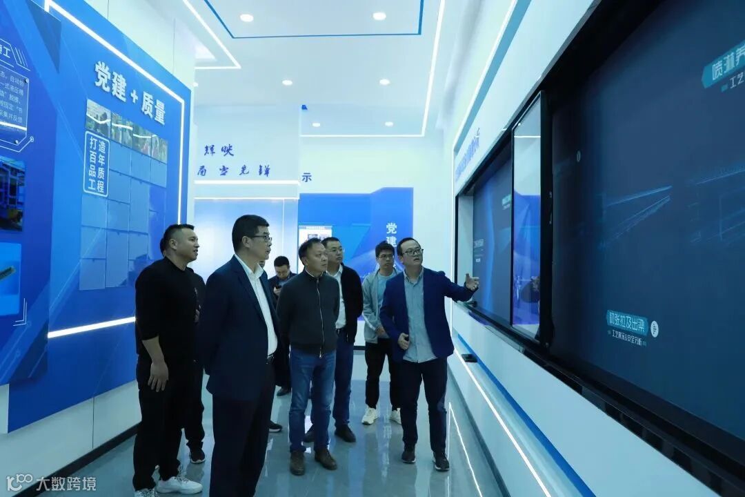 赵益民副总经理一行首先参观了项目智慧中心体验馆,详细了解了项目通过多项技术对进度、成本、质量、安全等方面形成的全过程数字化实时管控。取代以软件为主实现人与人连接的信息化时代,迈向通过软硬一体化方式实现人与物、物与物连接的数字化时代,是实现智慧梁场成功转型的关键。