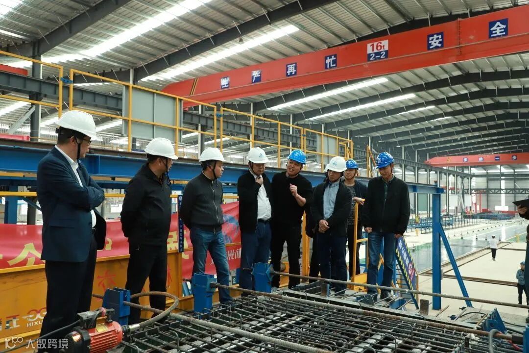 随后参观了项目智慧梁场生产车间,沿生产流水线实地察看了钢筋加工区、胎架绑扎区、横移摆渡区、浇筑区、蒸养区、张拉及出梁区。