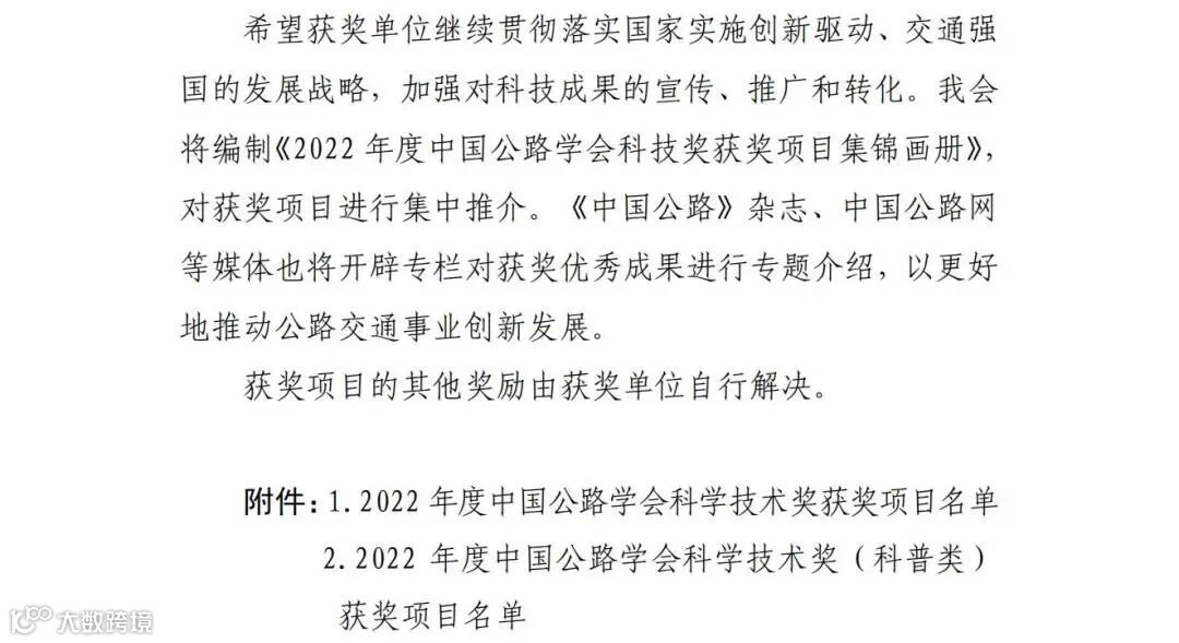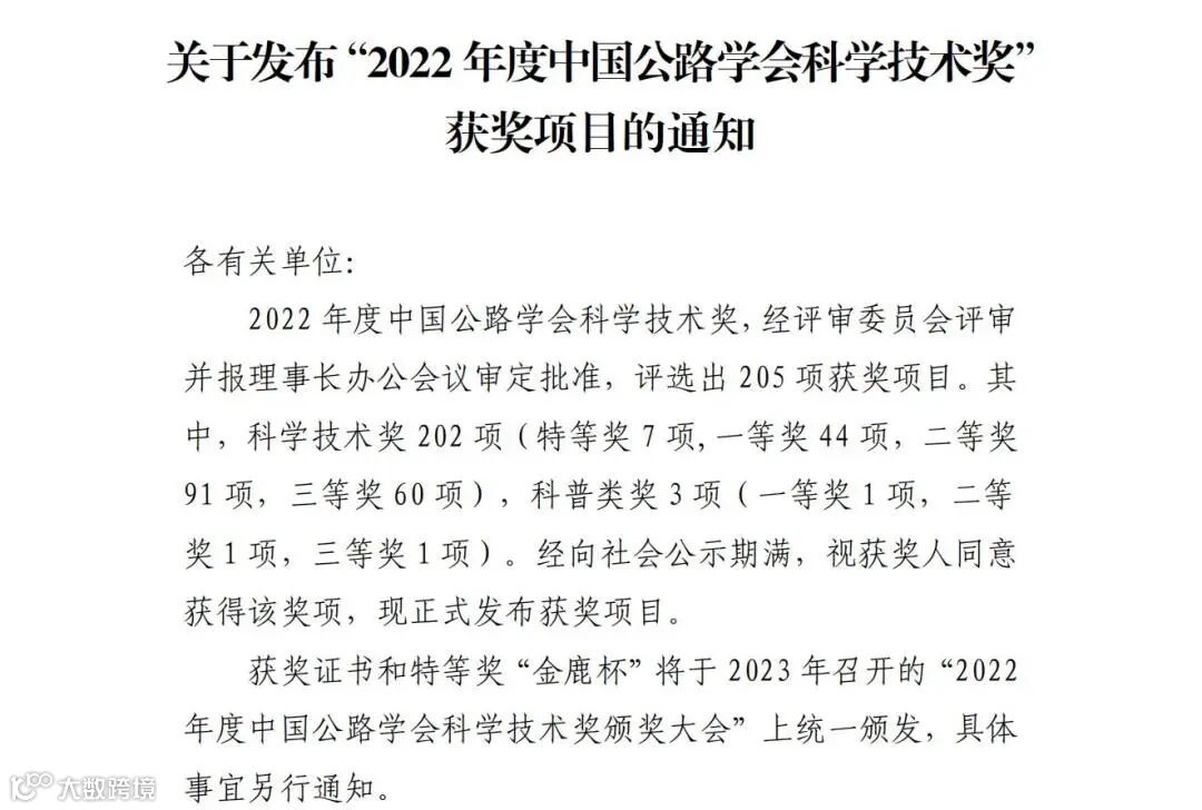 近日,公司通过校企合作,依托千黄高速淳安段工程的课题——《湖库区高速公路绿色建造关键技术研究》荣获2022年度中国公路学会科学技术奖二等奖。
