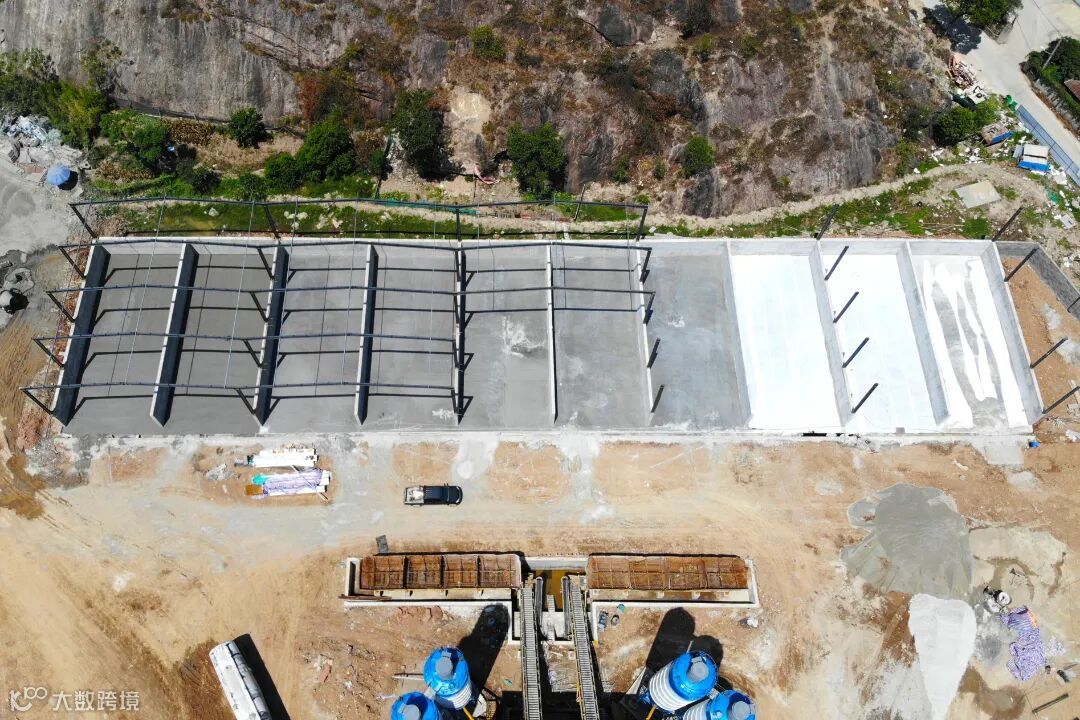 钢筋棚占地面积4050㎡,上部钢筋棚搭建及内部地坪浇筑已全部完成。