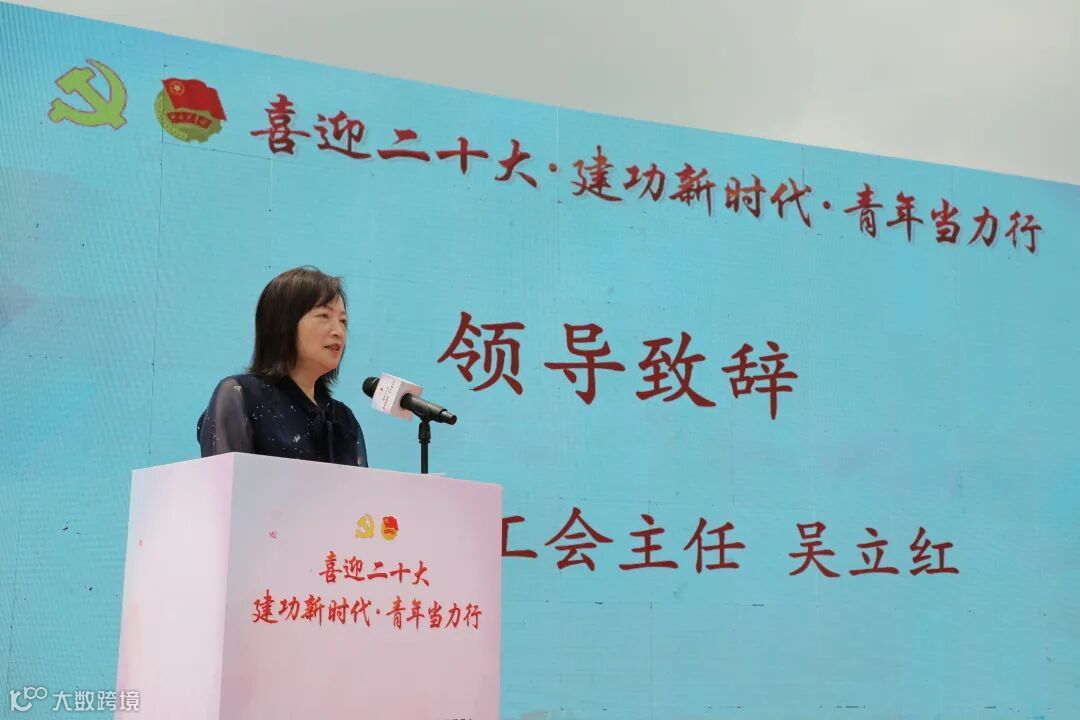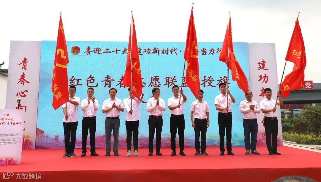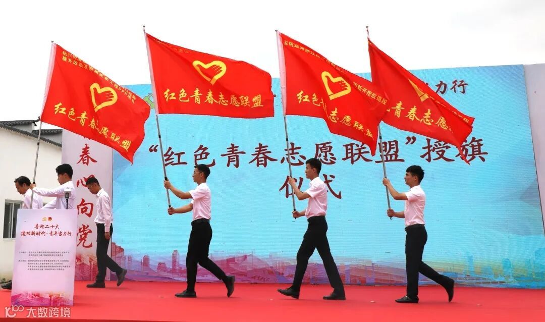 现场领导为斗志昂扬的5支“红色青春志愿联盟”授旗。当“红色青春志愿联盟”的旗帜飘扬在建设工地,项目青年心中默默下定决心:扎根一线、增强本领,努力成为交通行业骨干、青年先锋,书写奋进新时代建设新天堂的青春华章。