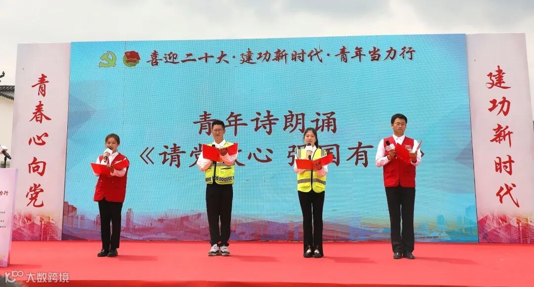 活动现场,项目青年以激情澎湃的诗朗诵,回顾一百年来共青团坚定不移跟党走、听党话的青春历程,喊出“请党放心、强国有我”的使命担当。