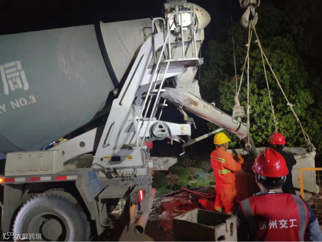 据现场管理人员介绍,万安桥桥梁桩基总数50根,现已完成首根桩基的浇筑。4月6日,位于油虎线改建工程的万安桥10号墩的首根桩基开钻,4月7日15点下钢筋笼,19点开始浇筑,21点10分顺利浇筑完成。此处桩基设计桩长51.5米,桩底-45米,桩径1.5米,设计方量78方。