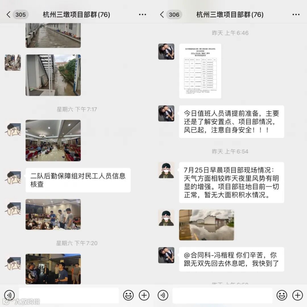 目前,杭州三墩互通项目部正密切关注雨情、风情、水情变化,做好风险隐患排查工作,安置好工人,现场督查,专人值班,确保安全度汛!