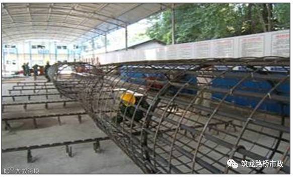 a、T梁钢筋定位:肋板钢筋绑扎应采用胎膜化安装后整体吊上台座。