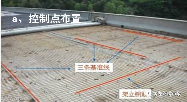 采用小槽钢法布设控制,底部采用方钢支撑,局部空隙处用泡沫止浆剂堵塞以防漏浆;设置架立筋,以保证钢筋保护层厚度。