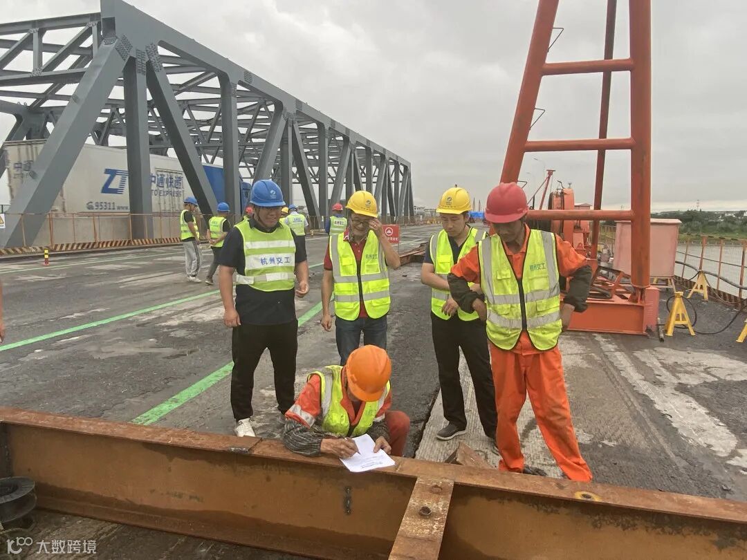 考评组前往衢江大桥施工点,对施工现场作业环境的安全管理及标准化建设情况进行了检查和指导。