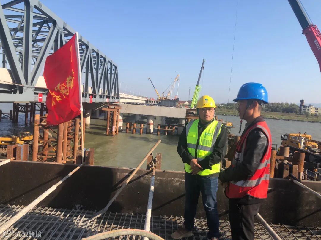 现场技术员介绍,衢江大桥是杭金衢改扩建二期六处关键控制性节点之一,全长970米。衢江大桥左幅下部结构施工具有工作面狭小、工序衔接紧密、紧邻钢桁架施工现场,安全风险大、交叉作业复杂等难点。