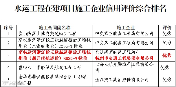 12月9日,浙江省交通运输厅发布了2020年全省水运建设市场督查暨信用评价检查结果。在此次评定中,杭交工京杭运河浙江段三级航道整治工程杭州段(新开挖航道段)HDSG-9标段获评优秀。
