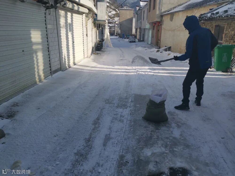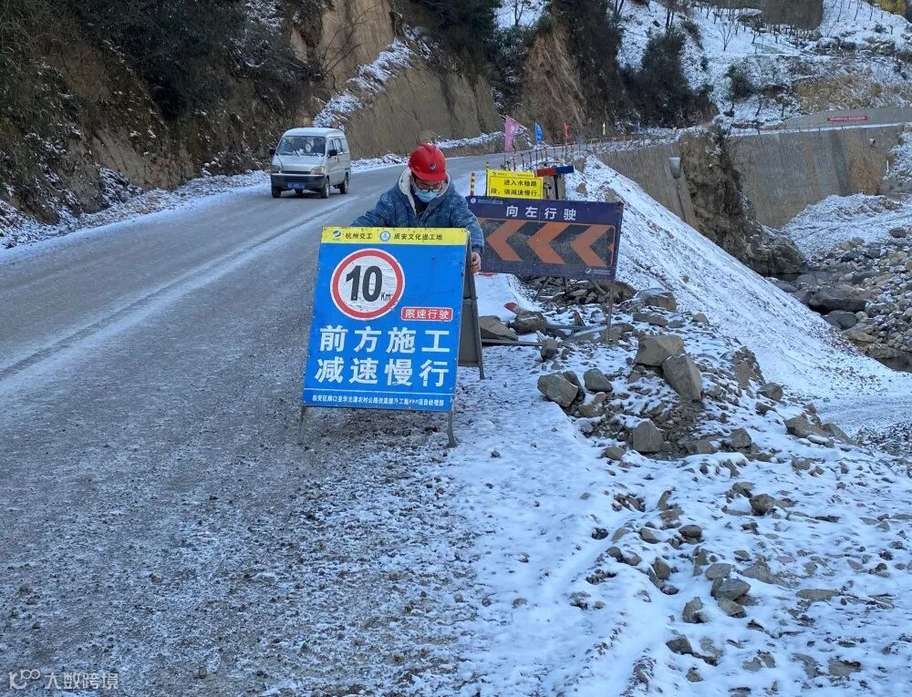 12月30日,临安大雪,平均积雪厚度达7厘米,项目部人员分为3组对全线进行巡查,及时处置安全隐患,同时对主要道路进行除雪除冰,封闭了危险路段,确保当地村民出行安全。
