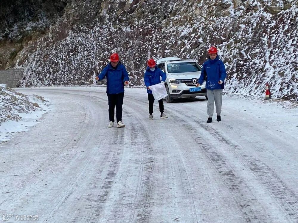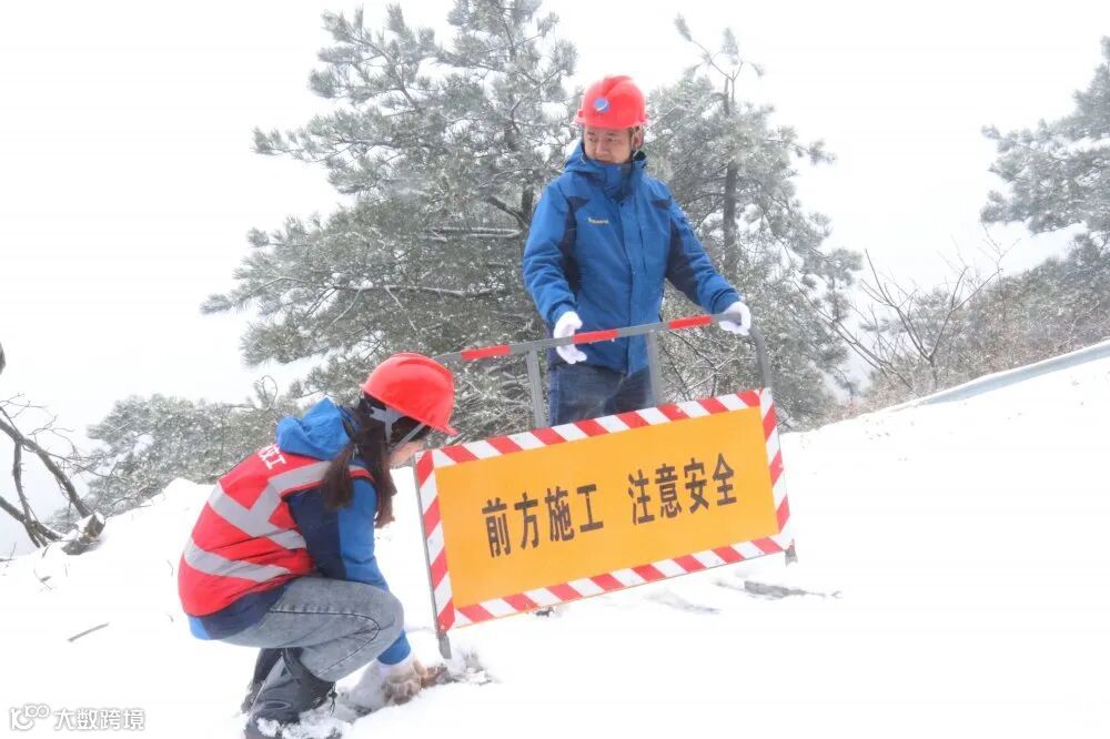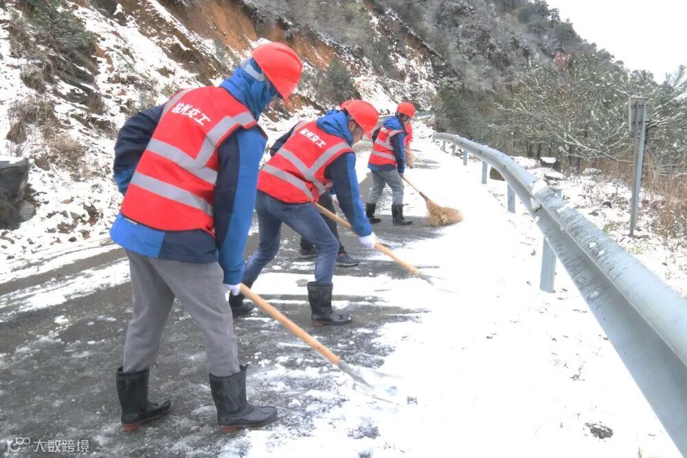 3月底临安降雪,高山华浪线平均积雪厚度高达5厘米,给人员安全和施工安全带来巨大隐患,项目部全体职工第一时间投入到抗击冰雪的行动中,保障了沿线道路正常通行。