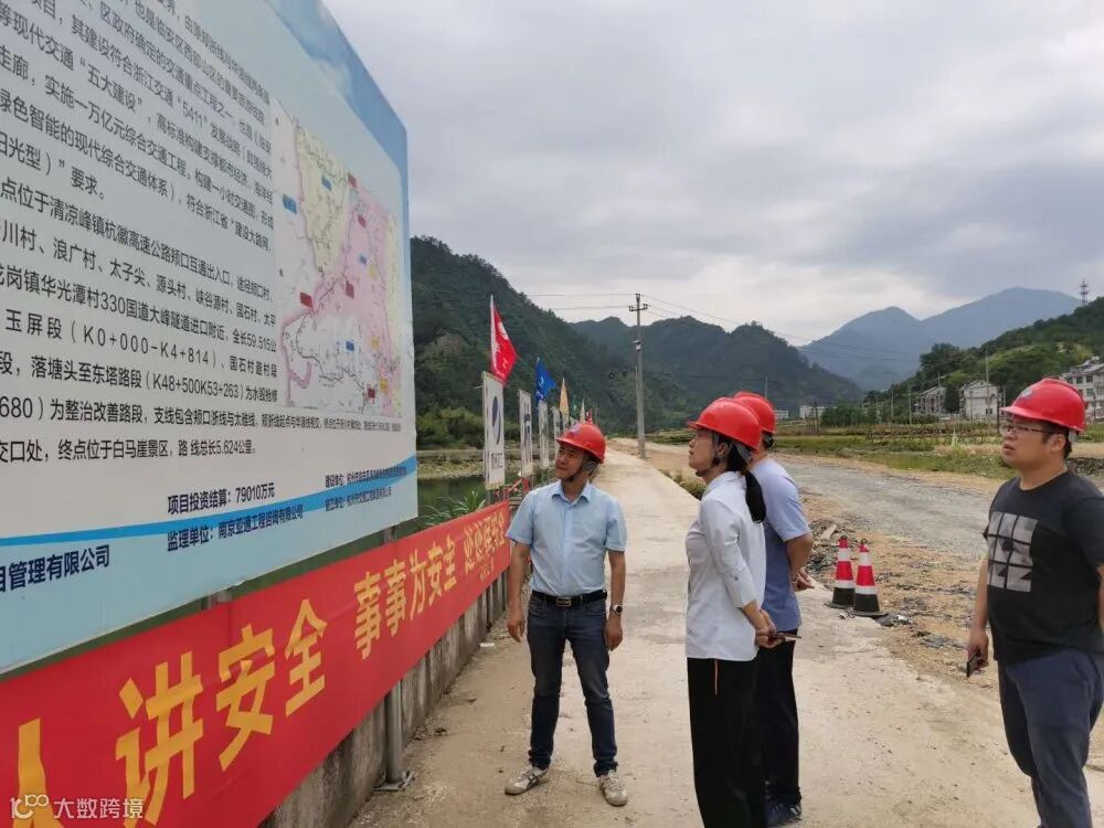 汪倩副总经理一行对项目现场进行了勘察,着重踏勘了较为危险的高边坡高挡墙和山体滑坡区域。汪倩副总经理首先对安全有序、激情昂扬的施工氛围表示满意,肯定了临安PPP项目大抓复工复产的成果。