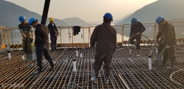 清晨,暮色还未褪去,天微微泛亮,桥面系施工现场已经开始忙碌起来,大家丝毫没有因为过节而懈怠,绑钢筋、浇筑混凝土,一道道工序有条不紊。