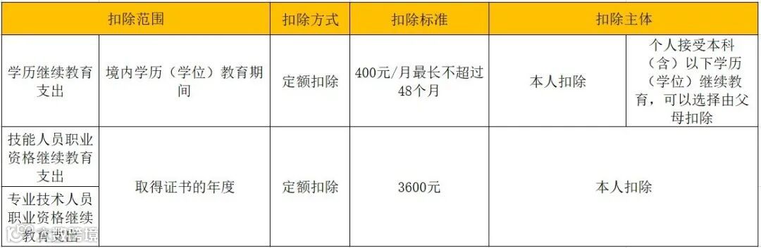 ➤(学历继续教育支出)同一教育事项,不得重复扣除。