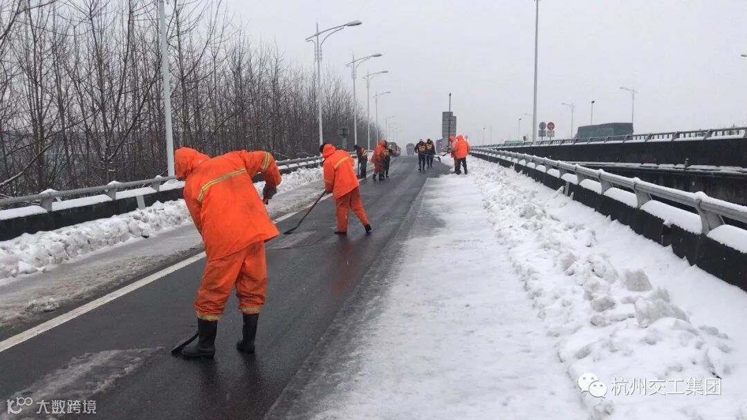 杭州交工养护公司承接杭宁高速2017-2020年小修保养工程,肩负着每年冬季的抗冰雪抢险任务。2018年1月24日-28日的连续暴雪给杭宁高速的通行造成了严重影响,项目部积极行动,根据预案要求组织好人员、设备和物资,吹响抗击雨雪冰冻灾害“集结号”,全体员工不畏艰苦,不怕危险,昼夜奋战在抗雪保畅最前线。在抗雪的关键时刻,公司总部、崇贤1标项目部、23省道建德项目部和乌龙山项目部雪中送“温暖”,组建志愿突击队及时赶赴支援,投身冰雪保畅战役两天两夜。本次抗冰雪项目部最高峰单日出动抢险人员180余人、抢险车辆32辆、自动洒盐机4台、铲车4台,累计消耗砂石料350吨、工业盐240盐、草包20000个。杭交人在这次冰雪保畅战役中充分发挥了“杭交精神”,通过和交警、路政及业主的共同努力,确保了杭宁高速公路的安全畅通。