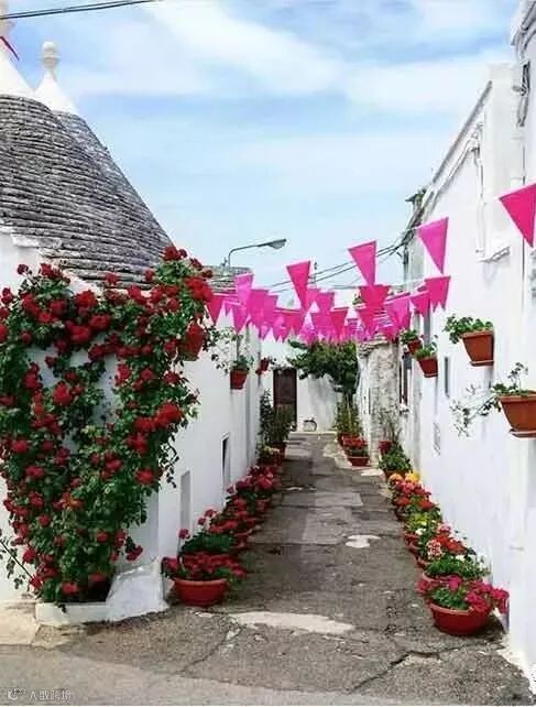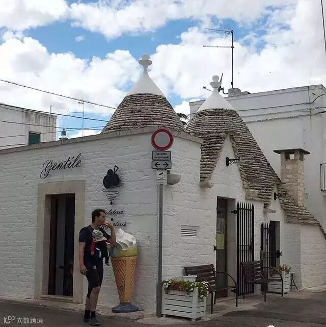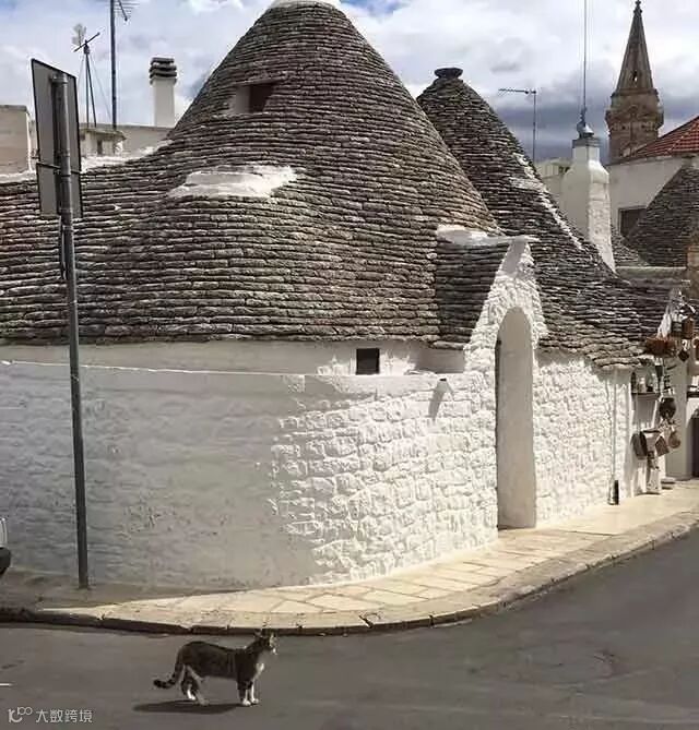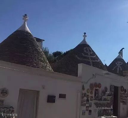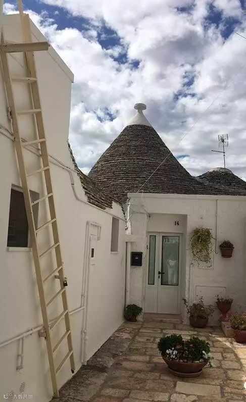 这种石灰岩堆砌的白房子,意大利人称之为“Trullo”,这个词是从希腊语中派生出来的,意思是“圆屋顶”,在1996年被列为世界文化遗产。