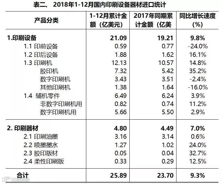 一、2018年1-12 月,国内印刷设备及器材进口情况