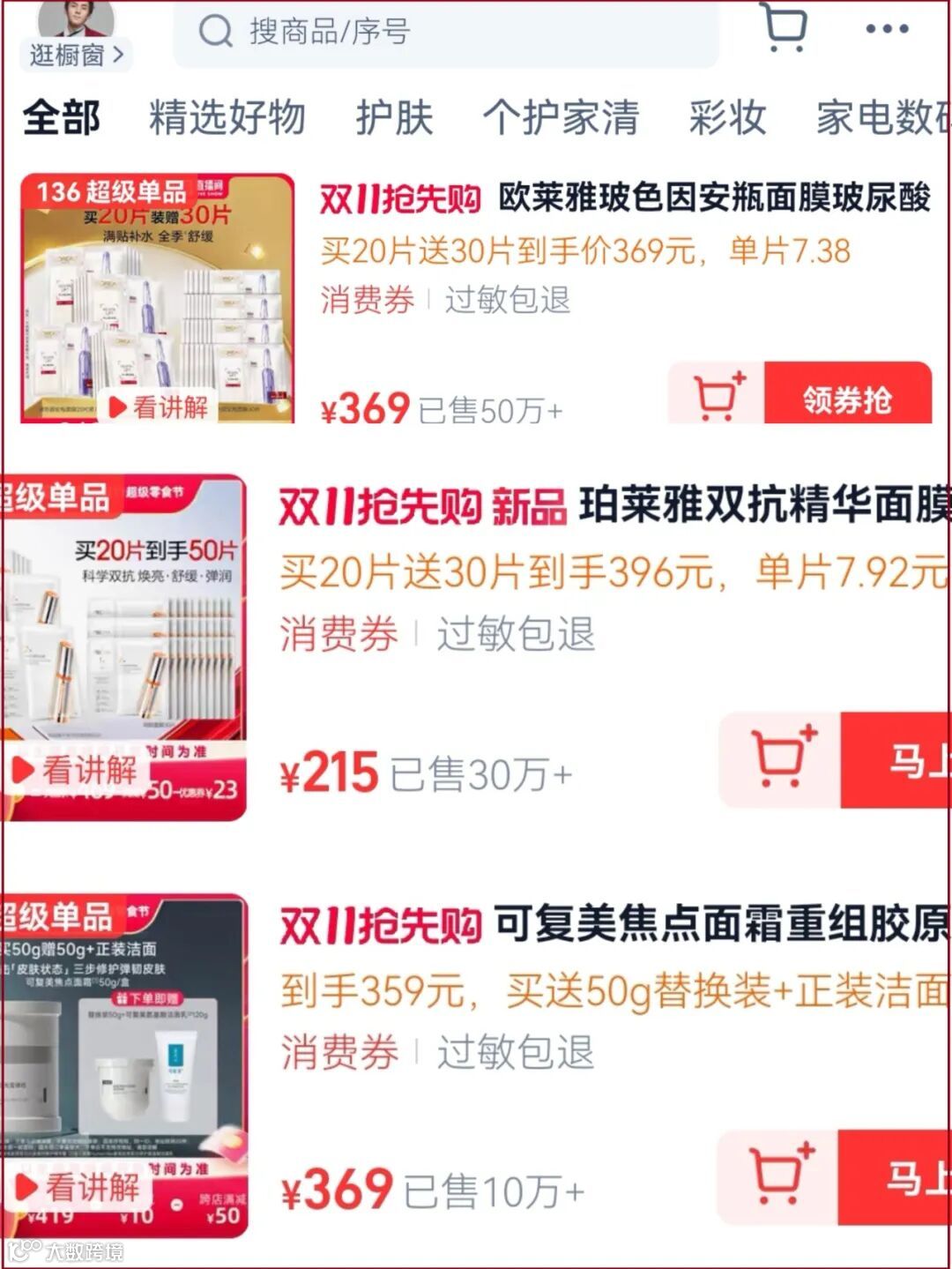 国际品牌方面,修丽可色修精华预定量达到10万+;兰蔻全新菁纯眼霜预定量超过6万+。丝塔芙、欧莱雅、理肤泉、娇兰等品牌的产品也都在上链接后不到1分钟内售罄。