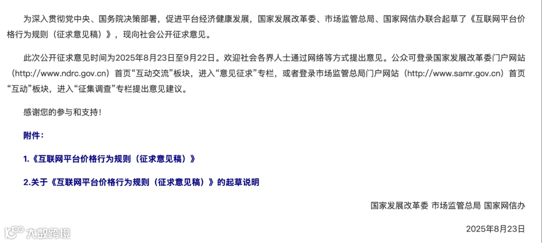 2025 年 8 月,国家发改委、市场监管总局、国家网信办联合就《互联网平台价格行为规则》公开征求意见,标志着电商价格监管进入法治化新阶段。