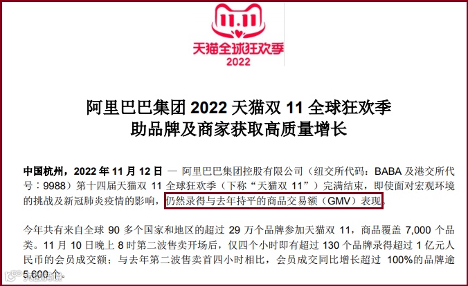 双11首次未披露总GMV