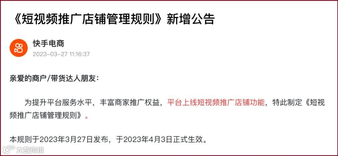 新规于2023年3月27日发布,于2023年4月3日正式生效,适用于平台内所有商户/带货达人。