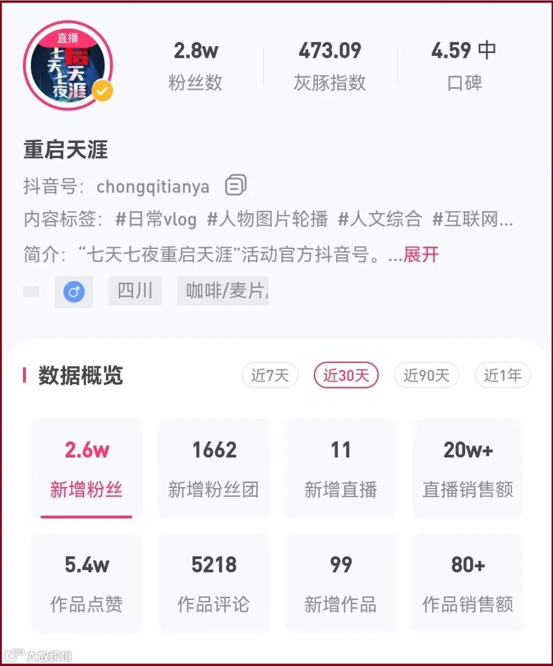 目前,重启天涯直播计划已经进行到第五天,粉丝总量不足3万,累积销售额为20万+。假如带货佣金平均按30%计算,其带货收入只有6万多,距离其筹募300万元的目标属实相差太远。