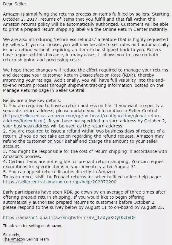 早在2017年,亚马逊就在售后政策中加入了退款不退货的概念(Returnless Refund),并声称这是“卖家强烈要求”的。