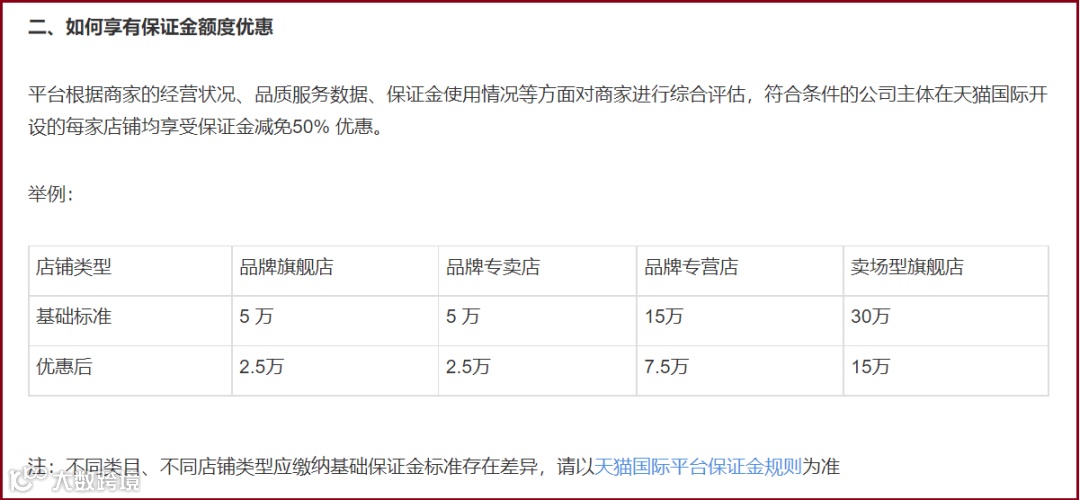 新政策规定,同一经营主体在天猫国际拥有两家及以上在营店铺,每家店铺保证金都可以减免50%。其中,银河专营店不适用本规范,服务大类中医疗及健康服务、疫苗服务、美容美发/美体美甲、购物金等特殊类目也暂不能享受这一优惠政策。