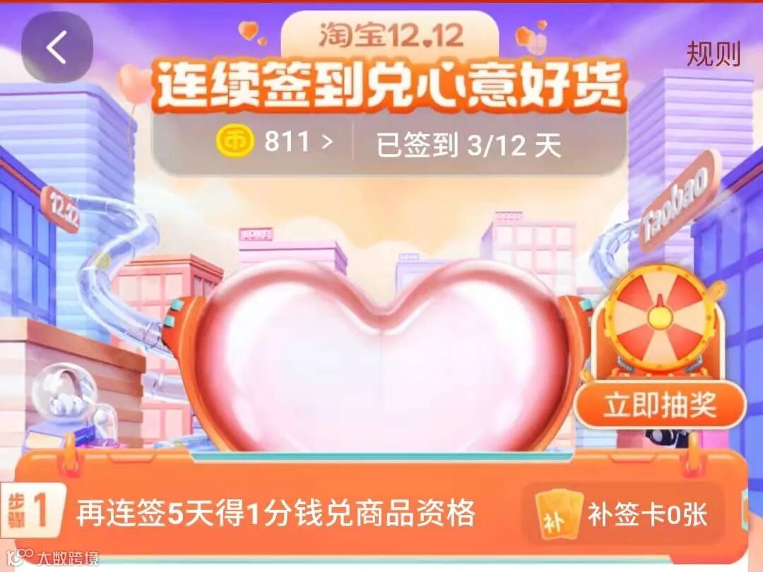今年,淘金币首次作为双12主活动玩法,出现在首页的活动位和开屏页。用户通过连续签到可获得“心意兑资格”,然后用“0.01元+指定淘金币”兑换“心意好物”。此外,用户还可以使用淘金币来参与双12心意抽奖。玩法简单,互动场景覆盖用户范围广。