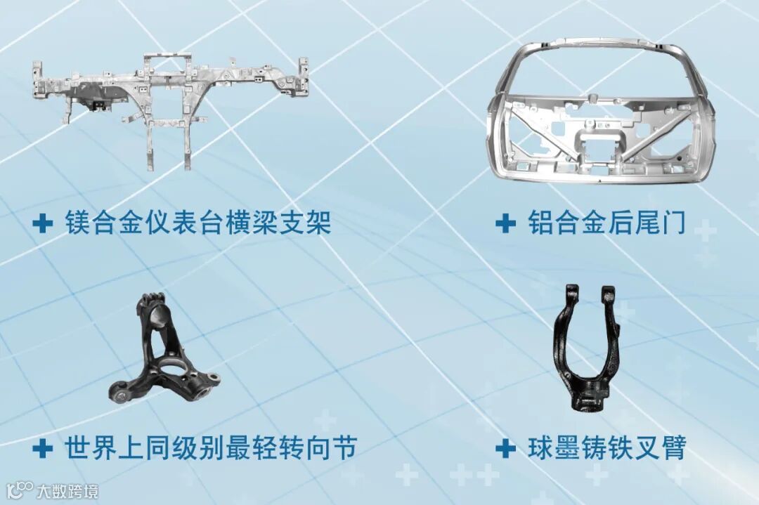 这些解决方案包含了我们在铝、镁合金以及球墨铸铁领域多年的技术沉淀以最新的创新成果,例如世界上同级别最轻的转向节、减重达40%的电驱壳体、功能高度集成的仪表台横梁支架等。