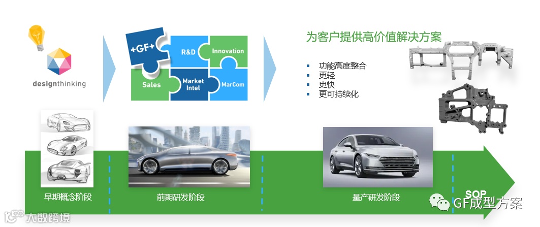 面对客户不同的需求,GF成型方案的轻合金高压压铸工厂、球墨铸铁工厂、模具工厂以及亚太研发中心都有所保障了,我们的创新性解决方案能够不断的帮助客户解决问题。同时,我们也将坚持不懈的去丰富价值链上的每一环。