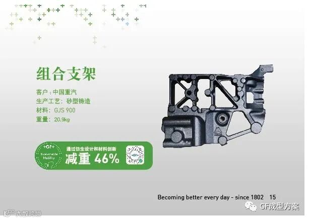 市场上对于组合支架的要求越来越高:设计优化,轻量化,高强度,集成等。GF成型方案用充分的验证方式和确保我们的零件能更耐磨,更持久,更坚韧,这样不同的组合支架在每款不同车型上都能有很好的表现。因此我们得到客户的高度认可。