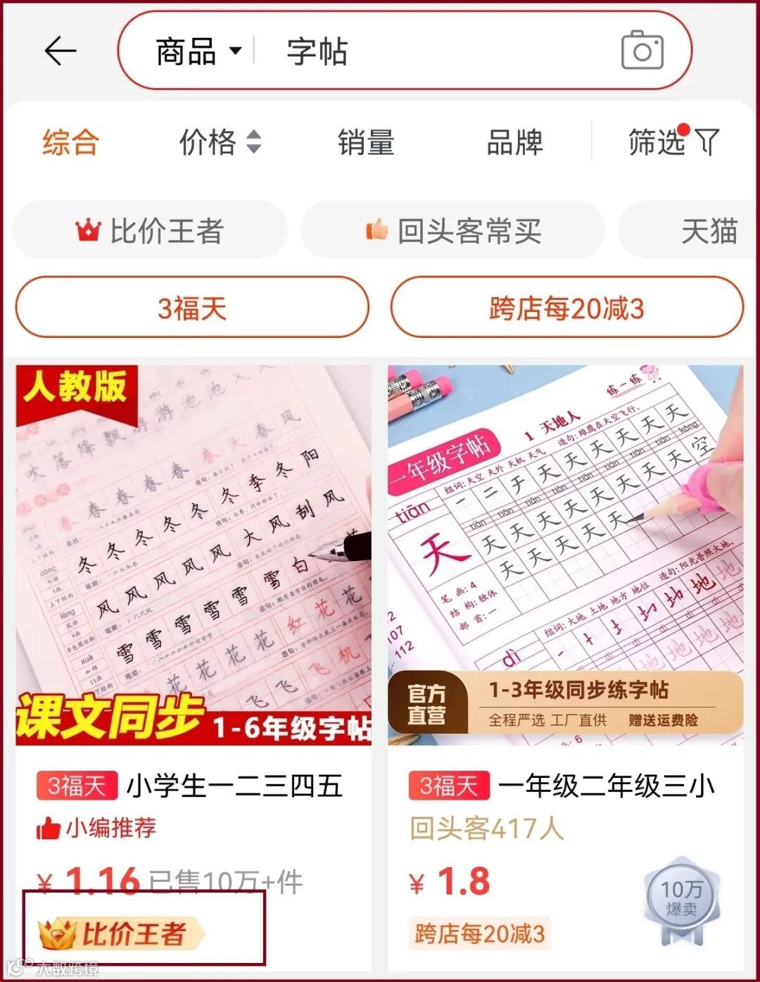 另外,9月初,淘特首坑搜索取消了竞价,开始零广告招租。