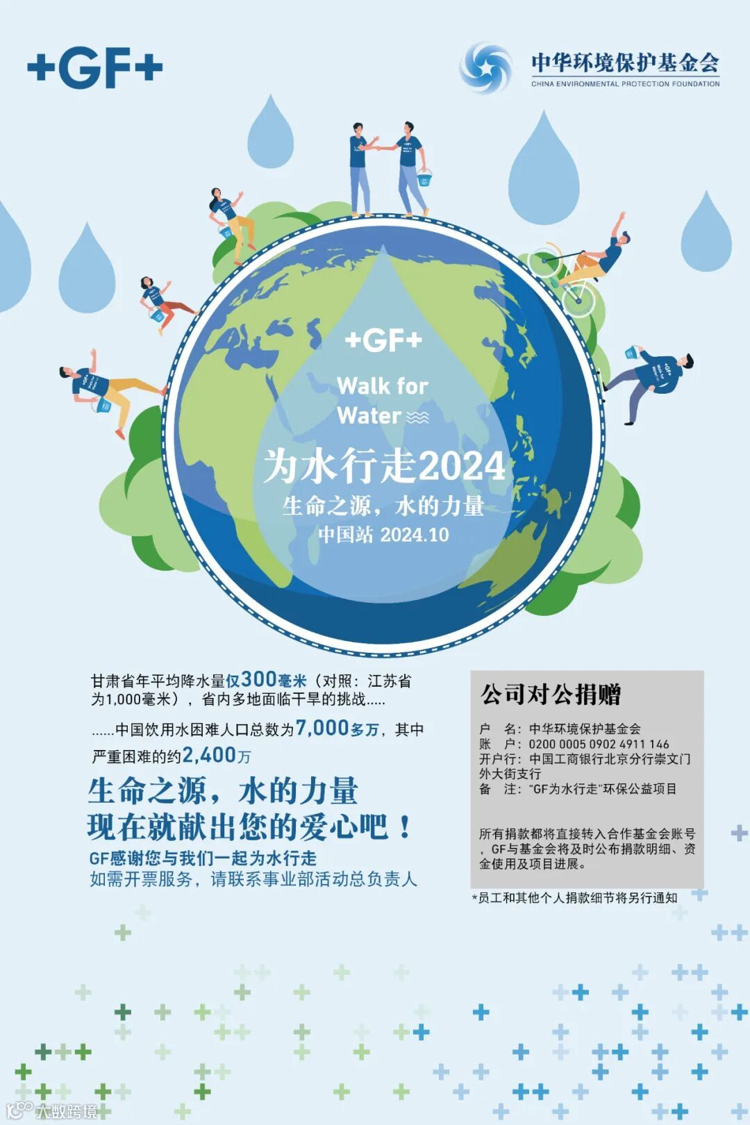 从今天开始,我们对公捐赠的入口正式开放,我们呼吁更多合作伙伴们加入我们。您的捐款将用于中国用水困难地区的安全供水、环境卫生和个人卫生项目。了解更多详细内容,请阅读:GF集团倡议大型全球公益活动 “GF为水行走2024 — 生命之源,水的力量”