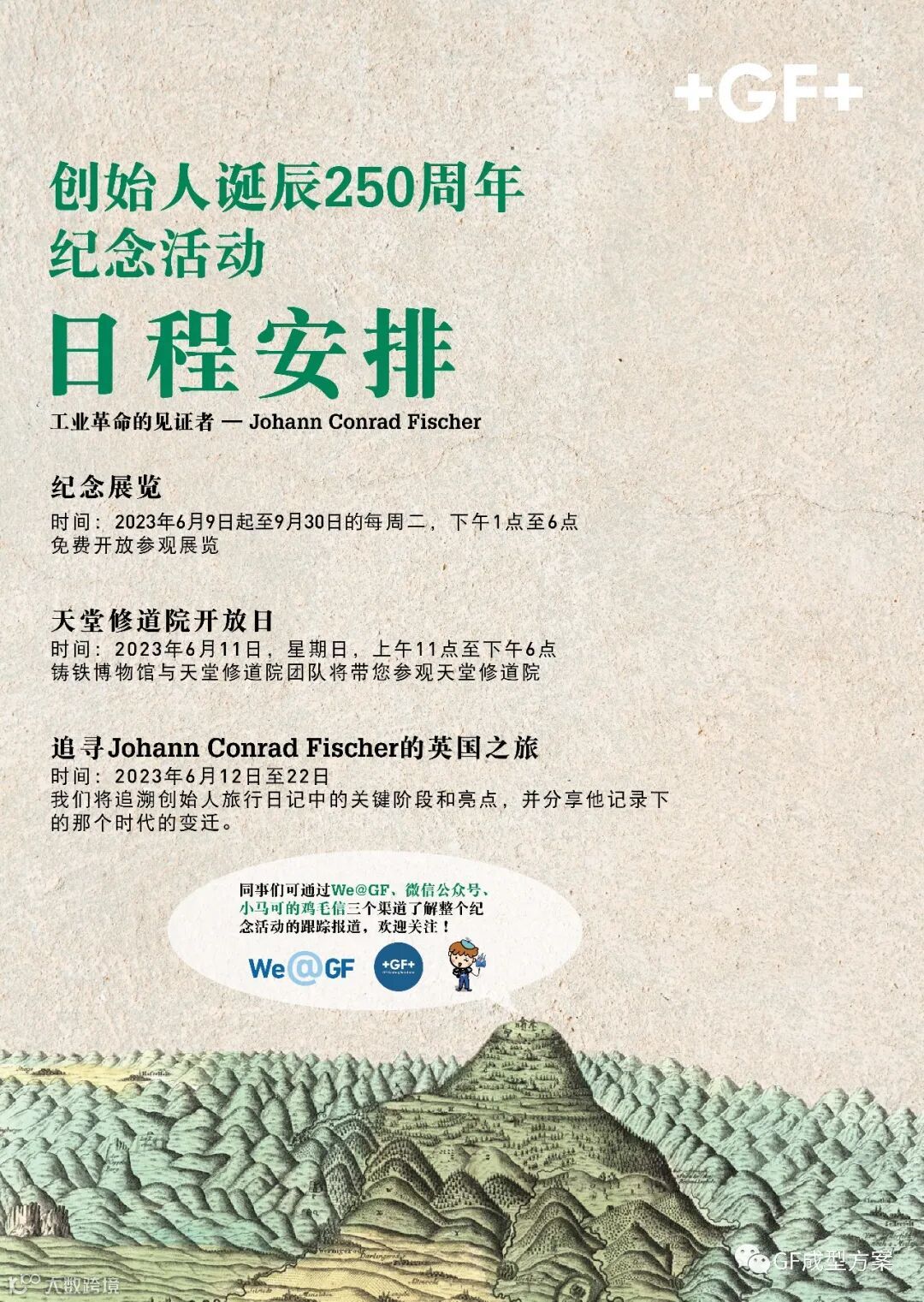 2023年9月14日,GF的创始人Johann Conrad Fischer(1773-1854)诞辰年满250岁。为了庆祝此事,GF集团特别在这一周年纪念日的前后安排了一些活动。